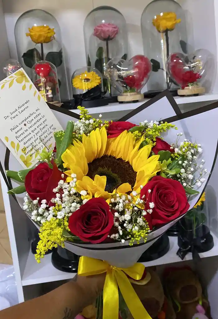 rosas y gírasoles follajes pápel de lujo. Lazo