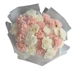 Bouquet con aprox. 10 claveles blancos y 10 claveles rosados. Nota: La flor puede ser sustituida dependiendo la disponibilidad de color y del producto “Mensaje Personalizado” máximo de 30 caracteres (Dejar el mensaje en el chat, los comentarios no se previsualizan para la tienda por lo que si se dejan allí no podrá ser incluido).