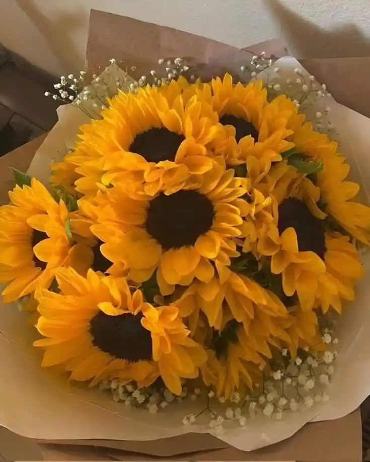 Contiene: 10 unidades de girasoles con follaje, incluye decoración y si desea algún mensaje dejarlo en comentarios. Los girasoles se asocian con el amor platónico y la amistad sincera, haciendo de ellos un regalo adecuado para amigos cercanos o seres queridos.