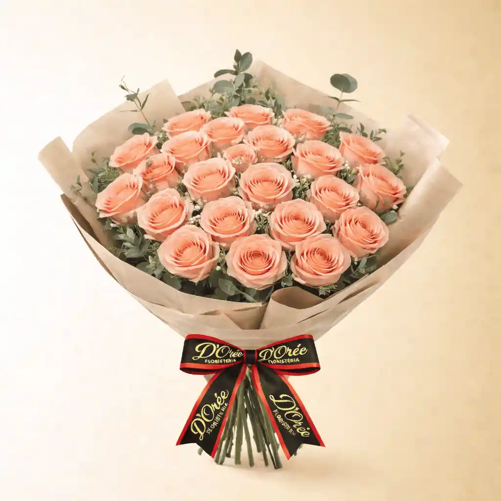 Un ramo que apuesta por la elegancia sin esfuerzo. Flores salmon seleccionadas y una presentación limpia hacen de este arreglo una opción perfecta para acompañar un brindis de Año Nuevo con buen gusto. Incluye Ramo de 24 flores salmon de estación. Presentación elegante en tonos claros. Nota Las flores pueden variar en variedad según disponibilidad, manteniendo siempre la armonía, el color y la frescura del diseño.