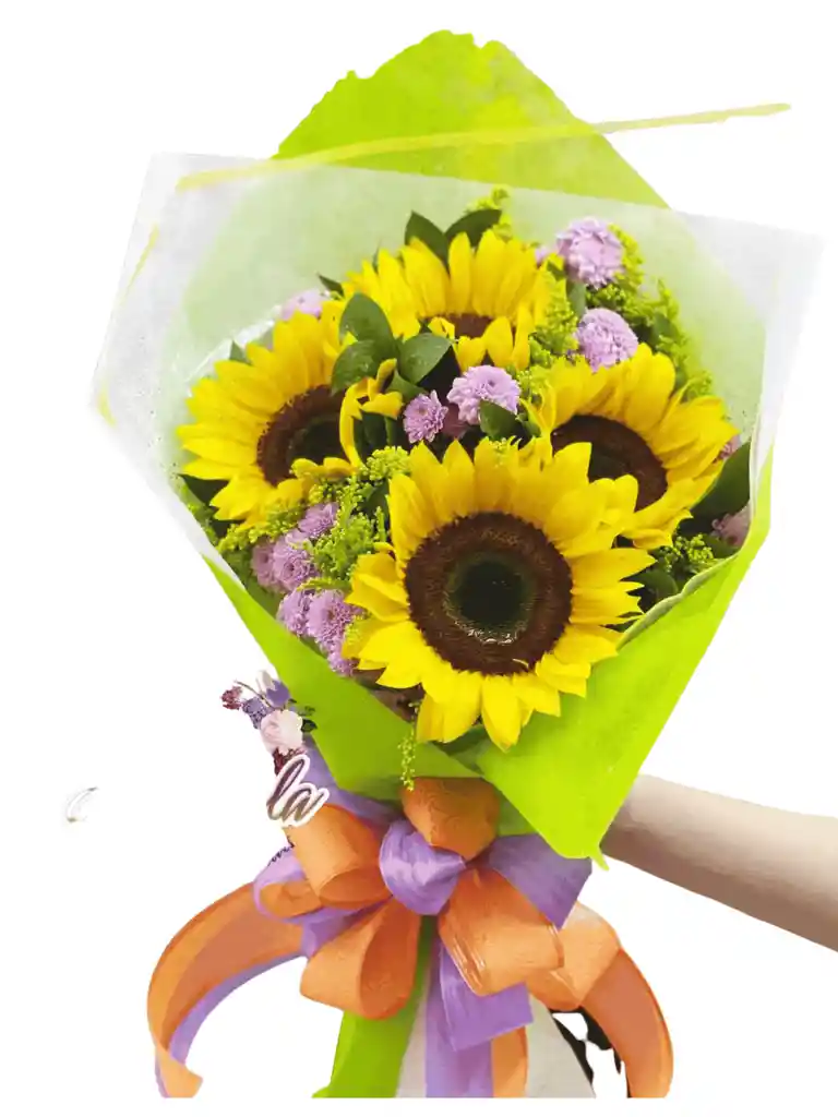 Arreglo de girasoles naturales, ideal para regalar en cumpleaños, aniversarios o cualquier ocasión especial.