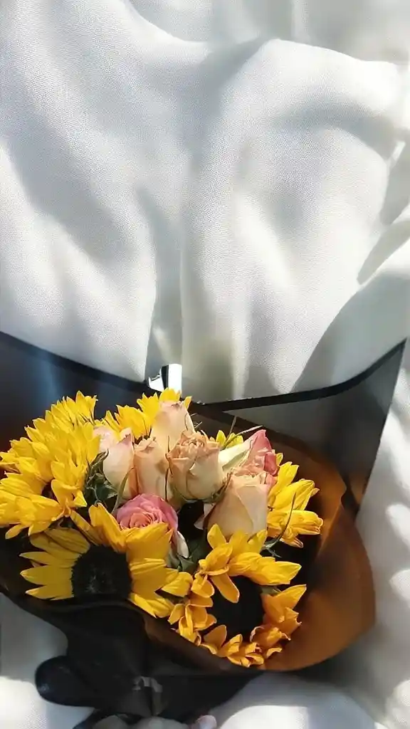 Bouquet con aprox. 6 girasoles y 12 rosas rosadas. Nota: La flor puede ser sustituida dependiendo la disponibilidad de color y del producto “Mensaje Personalizado” máximo de 30 caracteres (Dejar el mensaje en el chat, los comentarios no se previsualizan para la tienda por lo que si se dejan allí no podrá ser incluido).