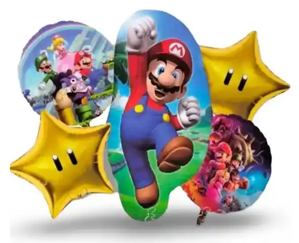 Bouquet de globos Mario Bross 5 piezas metalizado