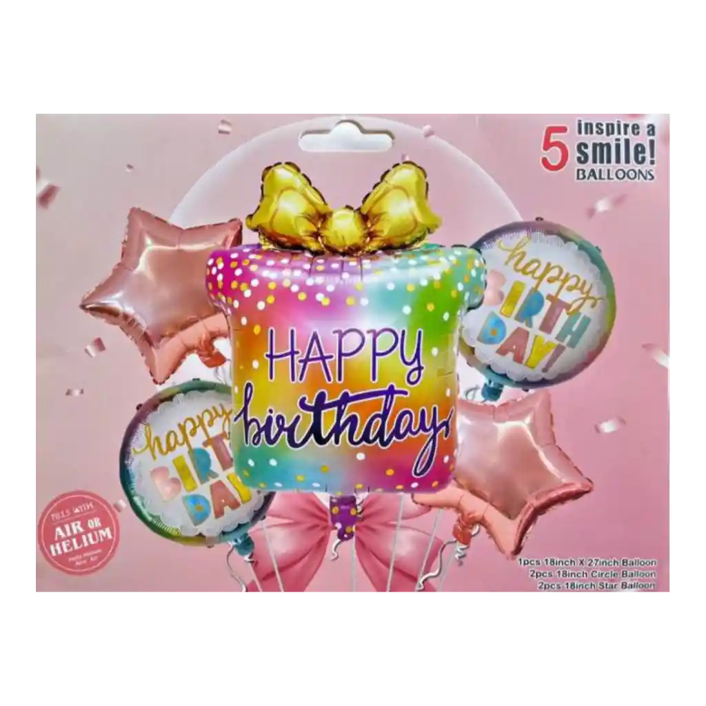 BOUQUET DE GLOBOS METALIZADOS 1 PAQUETE X 5 UNIDADES DE GLOBOS METALIZADOS