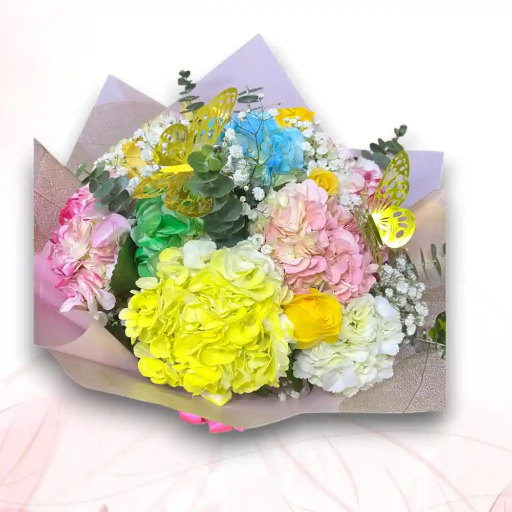 Bouquet de hortensias frescas de gran tamaño, cuidadosamente seleccionadas y envueltas en papel premium. Un arreglo elegante y sofisticado, ideal para ocasiones especiales, agradecimientos o para decorar con un toque natural y delicado.