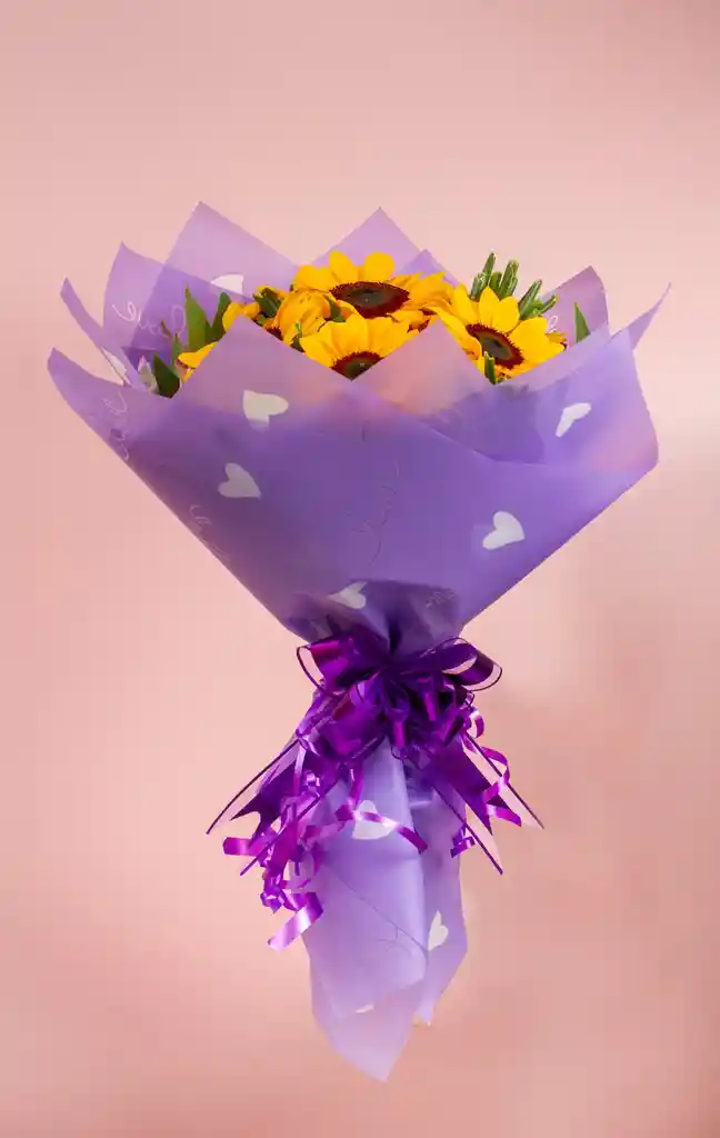 "¡Celebra la alegría del sol con nuestro encantador bouquet de mini girasoles! Estas version mini de girasoles son maravillas amarillas irradian calidez y felicidad, perfectas para iluminar cualquier día. Repletos de encanto y energía positiva, nuestros mini girasoles son la elección ideal para expresar gratitud, amistad o simplemente para alegrar el día de alguien especial. Deleita tus sentidos con este ramillete soleado que captura la esencia del verano en cada pétalo." los girasoles son flores llenas de significado positivo que pueden transmitir una variedad de emociones y mensajes, desde la alegría y la felicidad hasta la admiración y la lealtad. Este ramo incluye un lindo papel decorativo, combinando su color de acuerdo a la flor que lleve de acompañamiento los mini girasoles, podras incluir una tarjeta pequeña con el.