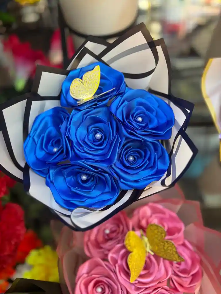 incluye 6 rosas azul