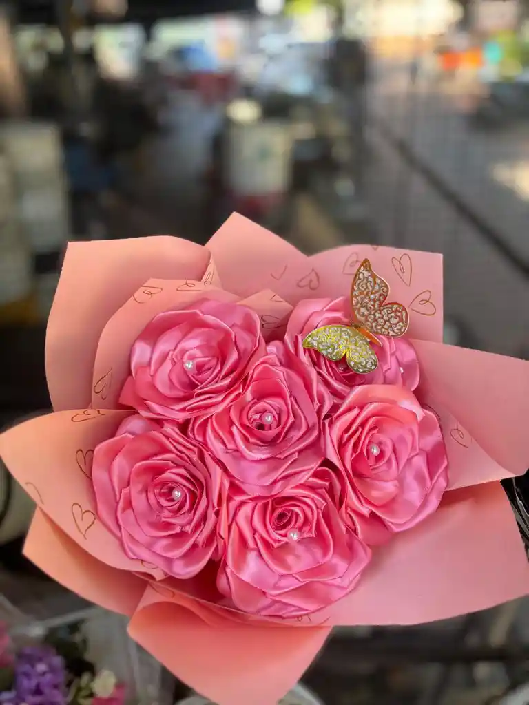 incluye 6 rosas rosadas