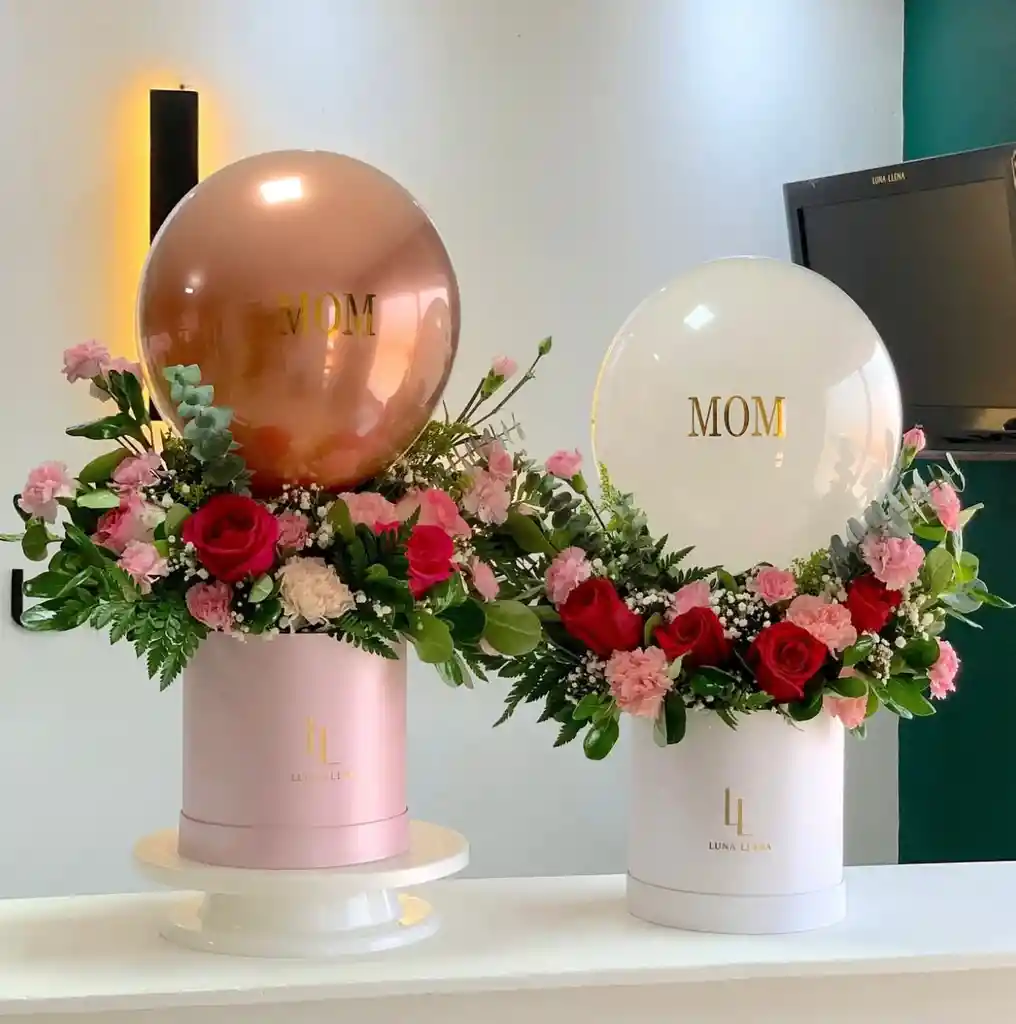 Espectacular arreglo de flores imponente como el amor de mamá, te llega con un globo burbuja elegante