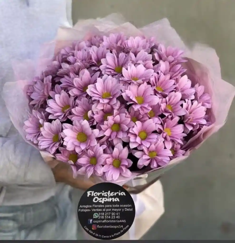 🌸 Bouquet Dulce Encanto 🌸 Ligero como un suspiro y suave como una caricia. El Bouquet Dulce Encanto está compuesto por delicadas margaritas lilas que evocan ternura, dulzura y una belleza serena. Su color pastel y envoltura en tonos rosa suave lo convierten en el detalle perfecto para expresar amor, admiración o gratitud de una manera romántica y encantadora. Ideal para regalar en cumpleaños, aniversarios o simplemente para decir: “Estás en mi corazón”. ✨ Si deseas agregar una tarjeta personalizada, por favor solicítala al hacer tu pedido. 💌 Mensaje sugerido para la tarjeta: "Tu dulzura ilumina mis días, y tu sonrisa llena de magia mi mundo. Gracias por existir en mi vida." 💖
