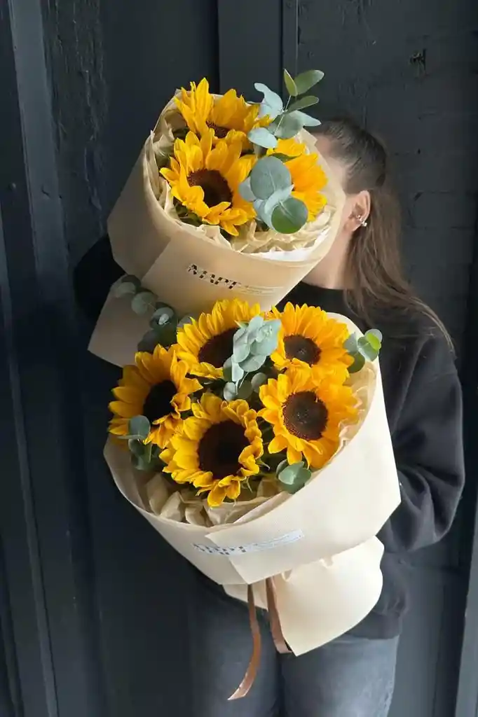 Cinco girasoles que iluminarán el día.