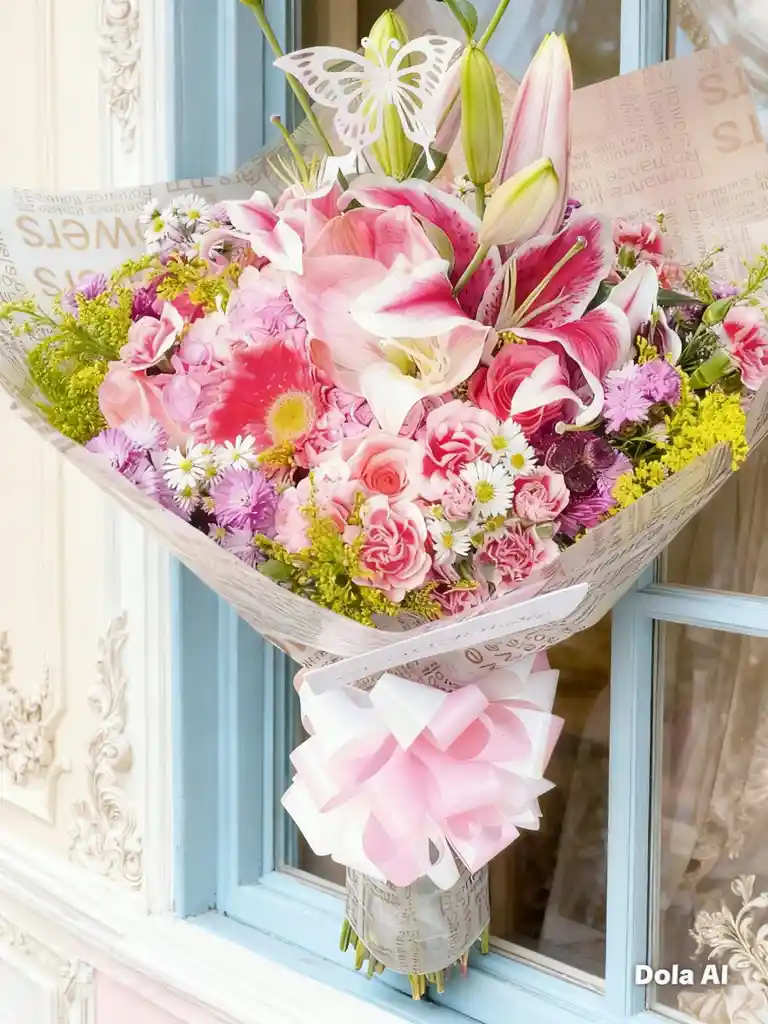 HERMOSO BOUQUET DE FLORES VARIADAS EN TONOS PASTELES
