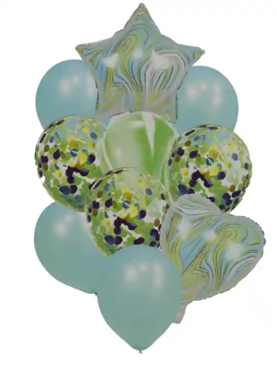 BOUQUET GLOBOS BOMBAS COLOR VERDE MENTA ESTRELLA Y CORAZON AGATA X10 PCS