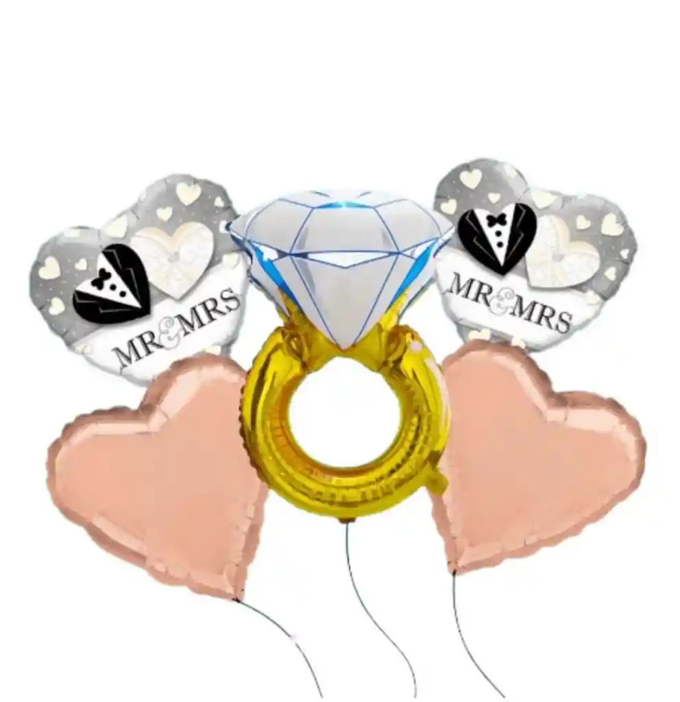 Bouquet de globos bride Contiene : 2 globos de corazones 1 globo anillo 2 globos MR Y MRS