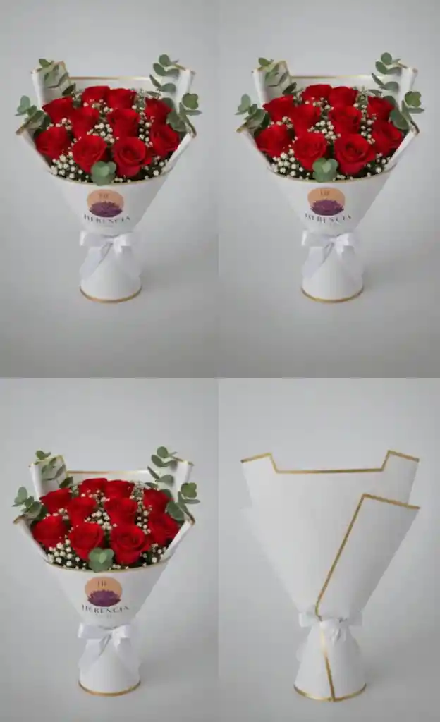Bouquet 12 Rosas rojas con follajes eucalipto y Gysofilia