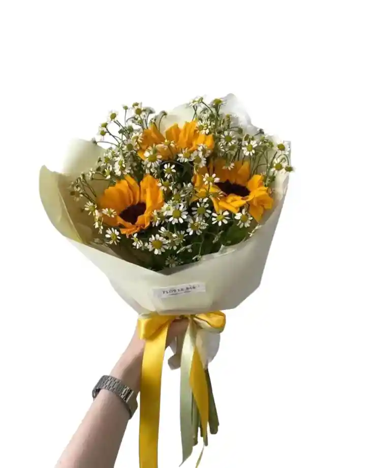 Un bouquet sencillo pero lleno de luz con 6 a 8 girasoles frescos, perfectos para transmitir energía y positividad en cualquier ocasión. Nota: La flor puede ser sustituida dependiendo de la disponibilidad de color y del producto. "Mensaje Personalizado" máximo de 30 caracteres (Dejar el mensaje en el chat, los comentarios no se previsualizan para la tienda, por lo que si se dejan allí no podrá ser incluido).