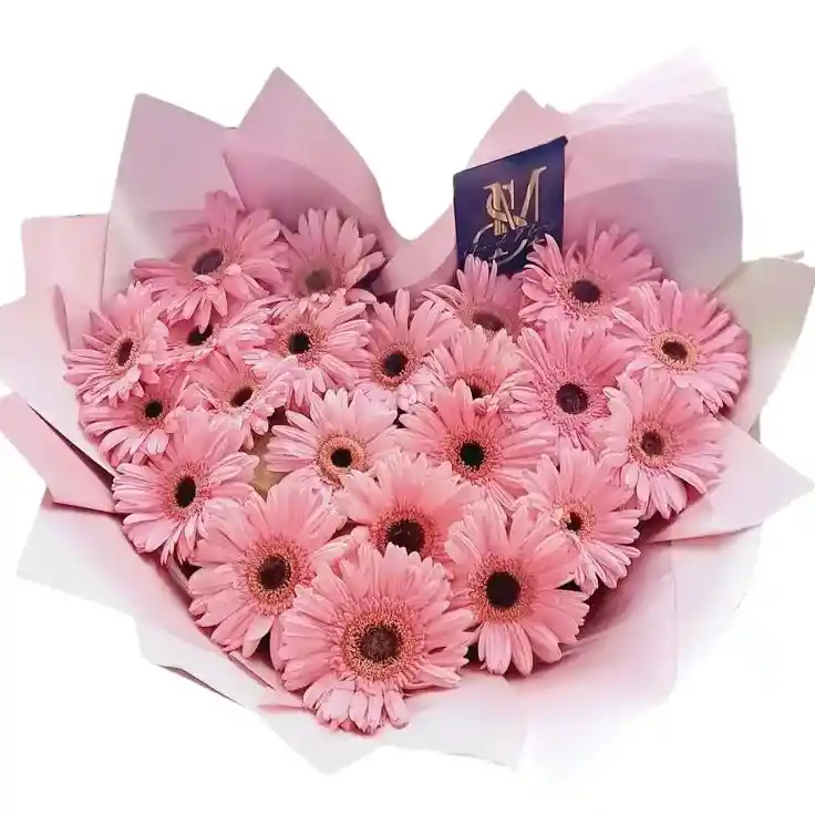 bouquet de corazón con gerberas Una bouquet especial en forma de corazón con 4 a 6 gerberas de colores vibrantes, perfecta para expresar amor y gratitud con un toque de frescura y belleza. Nota: La flor puede ser sustituida dependiendo de la disponibilidad de color y del producto. "Mensaje Personalizado" máximo de 30 caracteres (Dejar el mensaje en el chat, los comentarios no se previsualizan para la tienda, por lo que si se dejan allí no podrá ser incluido).