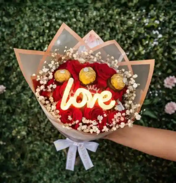 Elegante bouquet de rosas rojas con detalles románticos que resaltan su estilo sofisticado. Perfecto para sorprender y expresar un amor especial. 🌹✨