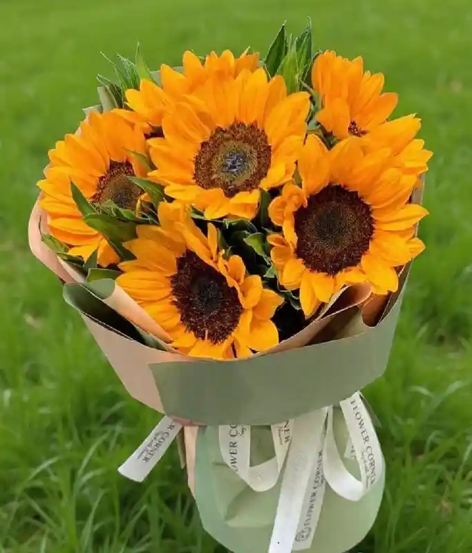 Un bouquet lleno de energía y optimismo que ilumina cualquier momento. Elaborado con 6 girasoles frescos, acompañados de rusco y delicada gypsophila, y envuelto en una presentación armoniosa y natural. Ideal para transmitir alegría, gratitud y buenos deseos. ✨ Magia en cada flor.