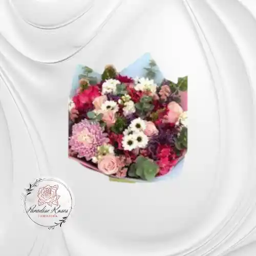 1 Bouquet campestres contiene margaritas y rosas color pastel mas follaje y decoración, Nota personalizada escríbela en el chat.