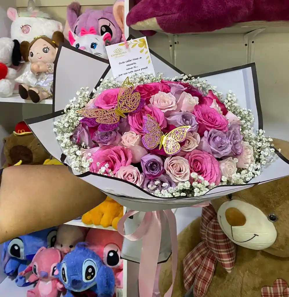 rosas en tonos pastelas Papel de lujo. Gipsofilia mariposas