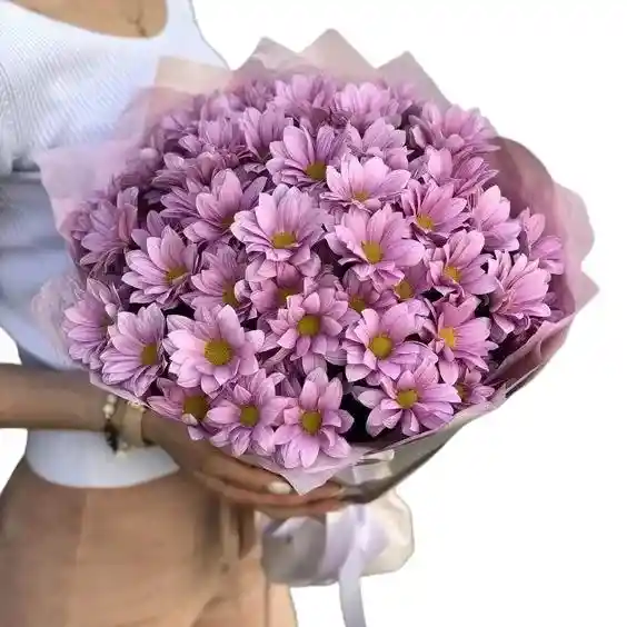 Este bouquet incluye aproximadamente 10 margaritas moradas , reflejando ternura y armonía. Perfectas para regalar a alguien especial. Nota: La flor puede ser sustituida dependiendo de la disponibilidad de color y del producto. "Mensaje Personalizado" máximo de 30 caracteres (Dejar el mensaje en el chat, los comentarios no se previsualizan para la tienda, por lo que si se dejan allí no podrá ser incluido).