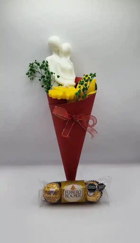 Vela de Soja 100% natural Aroma floral Figura de pareja enamorados con 2 flores en bouquet con chocolates Ferrero x3U