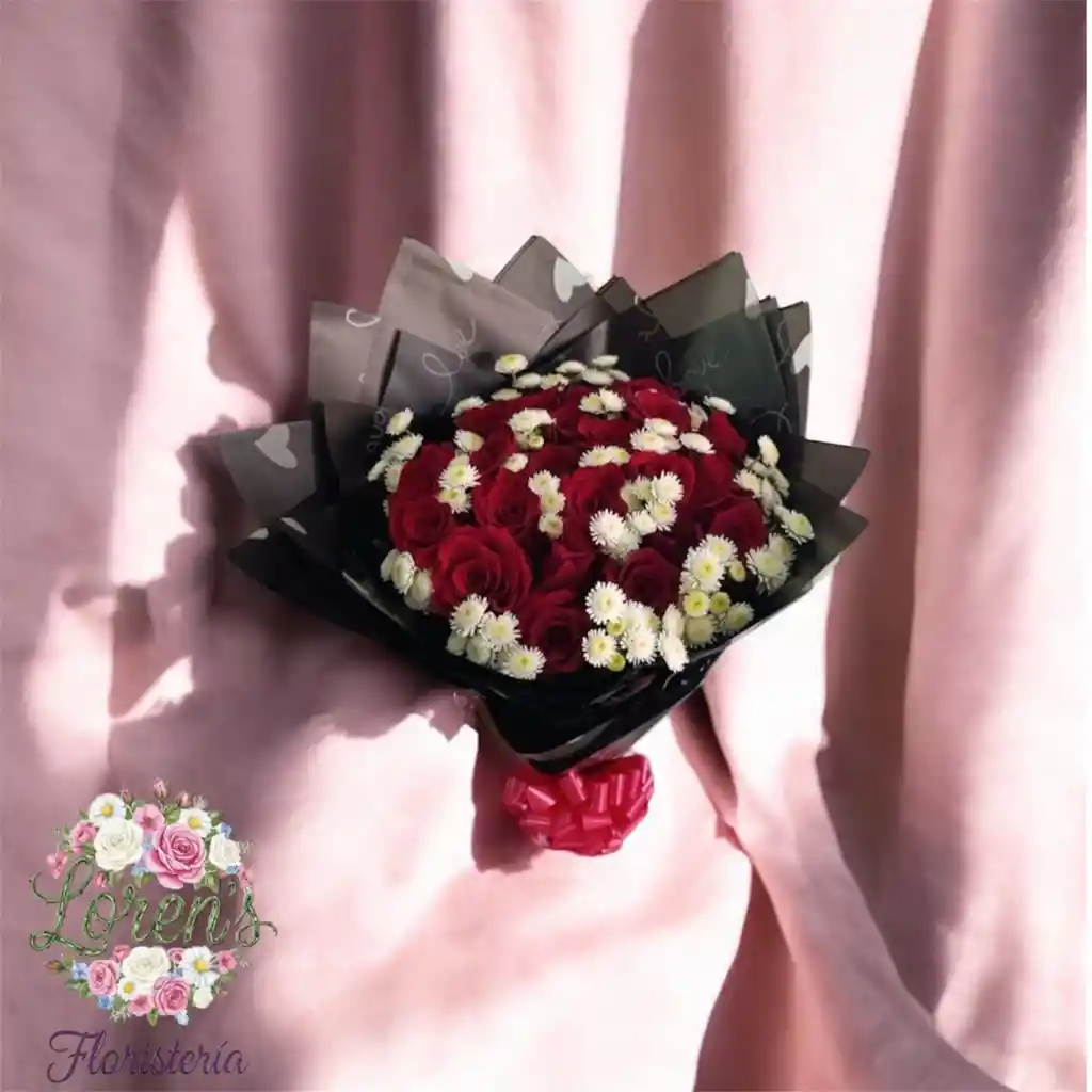 🌹💐La máxima expresión del detalle. Este imponente bouquet combina la fuerza de 24 rosas rojas de exportación con delicados toques de variedad blanca que aportan luz y frescura a cada pétalo. Diseño Exclusivo: Sellado con papel coreano de alta calidad en tonos oscuros, diseñado para resaltar el rojo vibrante de las rosas. Toque Final: Coronado con un moño satinado que garantiza una presentación de lujo, ideal para las ocasiones más especiales. Presentación: Un arreglo voluminoso y elegante, perfecto para sorprender y dejar una huella inolvidable.🌹💐