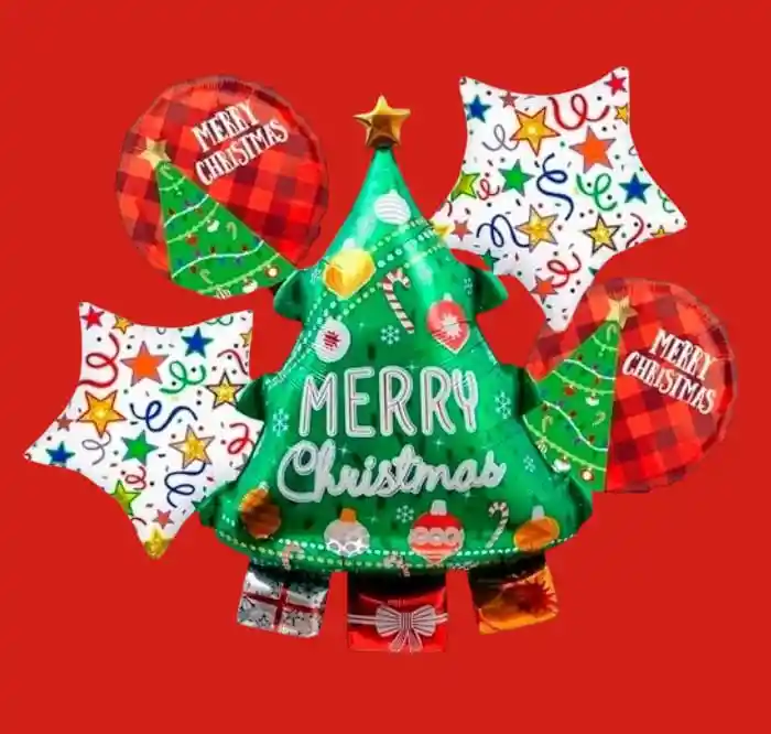 Hermoso Globo Metalizado Árbol de Navidad Merry Christmas. con preciosos colores Navideños. Celebra momentos especiales con un toque de elegancia y color. Nuestros globos Aportan un aire festivo a cualquier ocasión. Puedes inflarlos con helio o aire, y dar vida a tus celebraciones Navideñas con un toque de lujo y estilo. Medidas: •1 Árbol de Navidad Alto: 83cm Ancho: 53cm •2 Estrellas Metalizadas 45x45cm •2 Globos Redondo 45x45cm NOTA •Los Globos se envían Desinflados