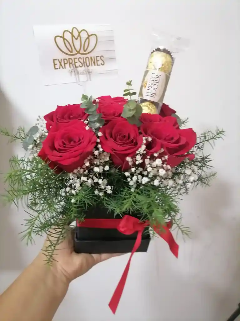 6 rosas follajes caja lazo tarjeta ferrero rocher *3