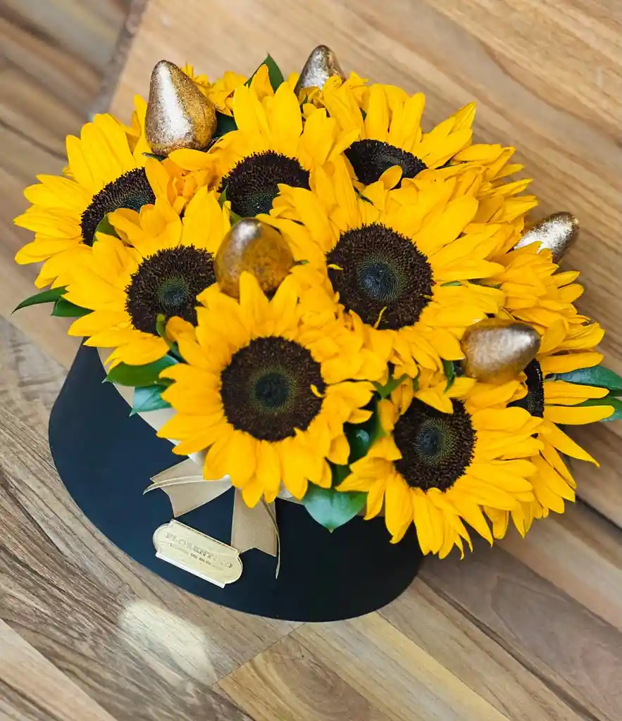 Un detalle que deslumbra por su color, energía y dulzura. DESCRIPCIÓN Este diseño combina la fuerza y alegría de los girasoles con el toque irresistible de nuestras fresas cubiertas en chocolate premium. INCLUYE - Tarjeta personalizada sin costo adicional. - 5 fresas cubiertas de chocolate.