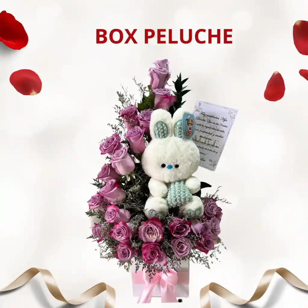 CAJA CON ROSAS Y PELUCHE (SUJETO A DISPONIBILIDAD) ESCRIBIR PARA ESCOGER EL PELUCHE