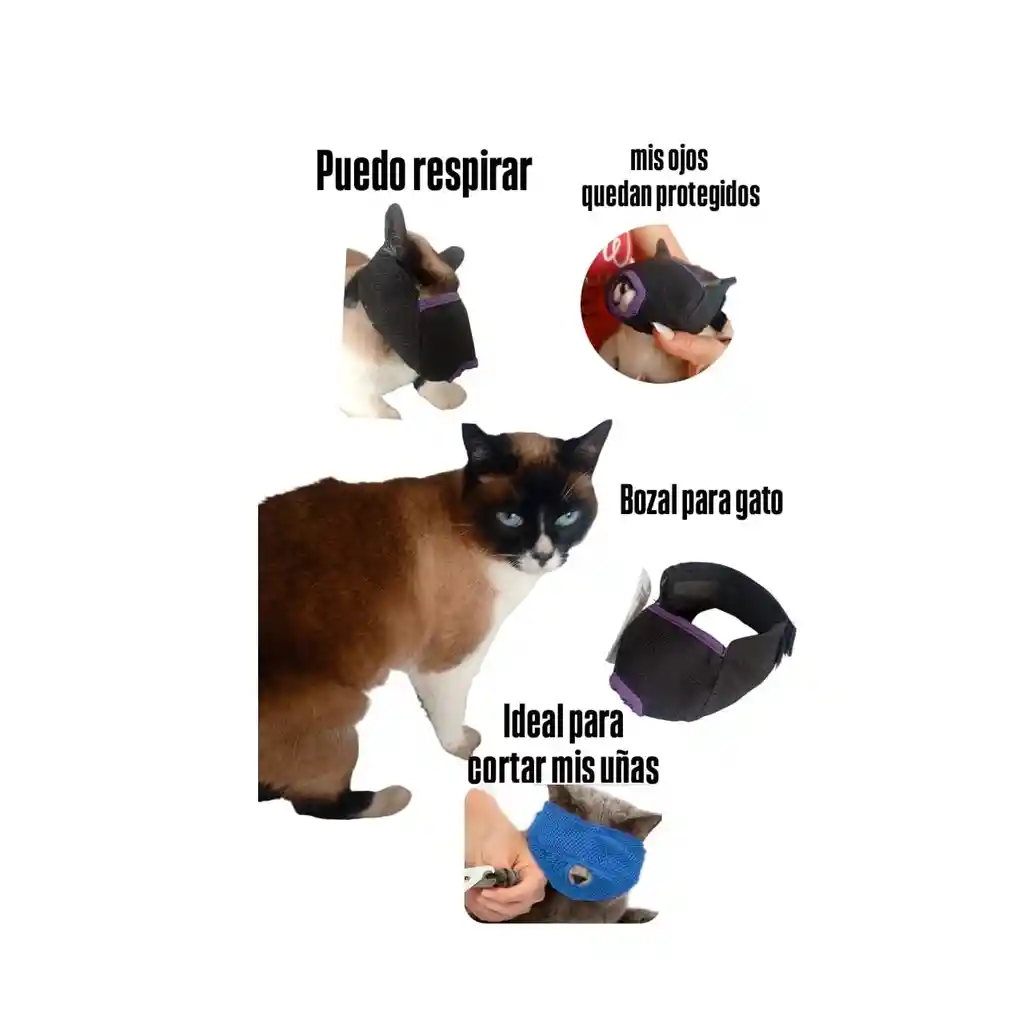 Bozal de gato diseñado para gatos adultos de tamaño promedio, es una herramienta útil para procedimientos veterinarios o de aseo, ayudando a prevenir mordeduras. Es crucial elegir un bozal que permita la respiración libre.