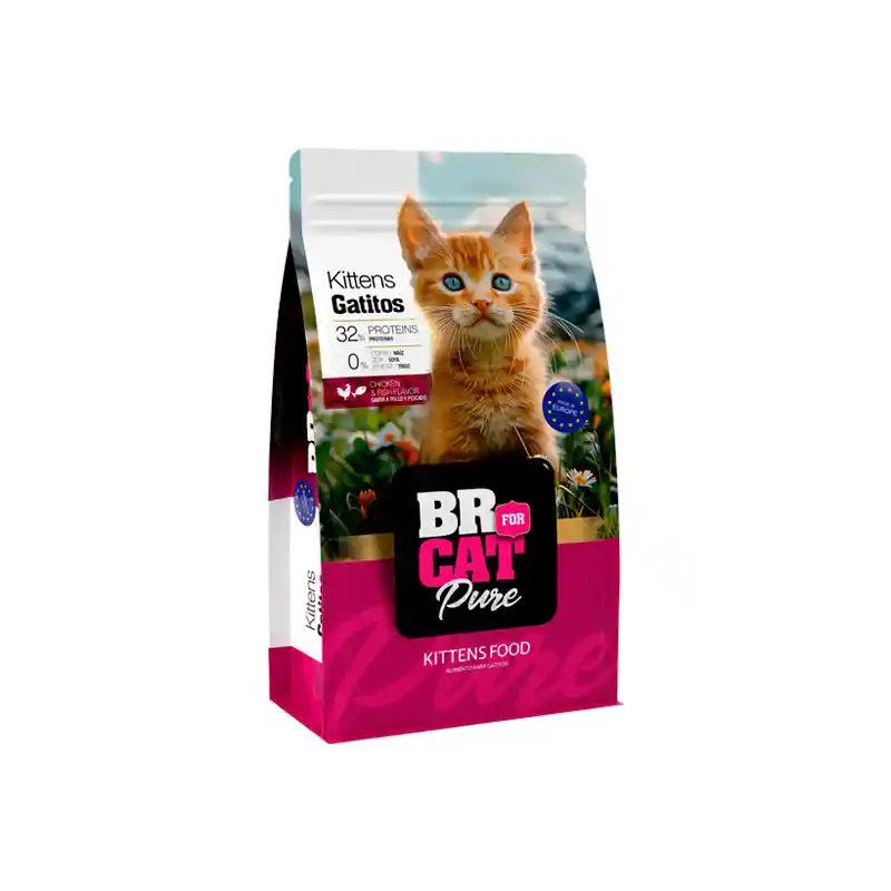 Fórmula BR® For Cat Pure Gatito Está especialmente diseñado para satisfacer las necesidades de un gatito durante los períodos críticos del crecimiento. Los gatitos necesitan mayores niveles de proteína y grasa para mantener los niveles de energía necesaria durante el crecimiento. Gatitos también necesitan aumento de los niveles de Calcio y fósforo para un mejor desarrollo óseo y muscular. También se recomienda la Fórmula BR® For Cat Pure Gatito para gatos durante el embarazo y la lactancia. es un alimento completo para gatitos de todas las razas de los 2 a los 12 meses de edad.