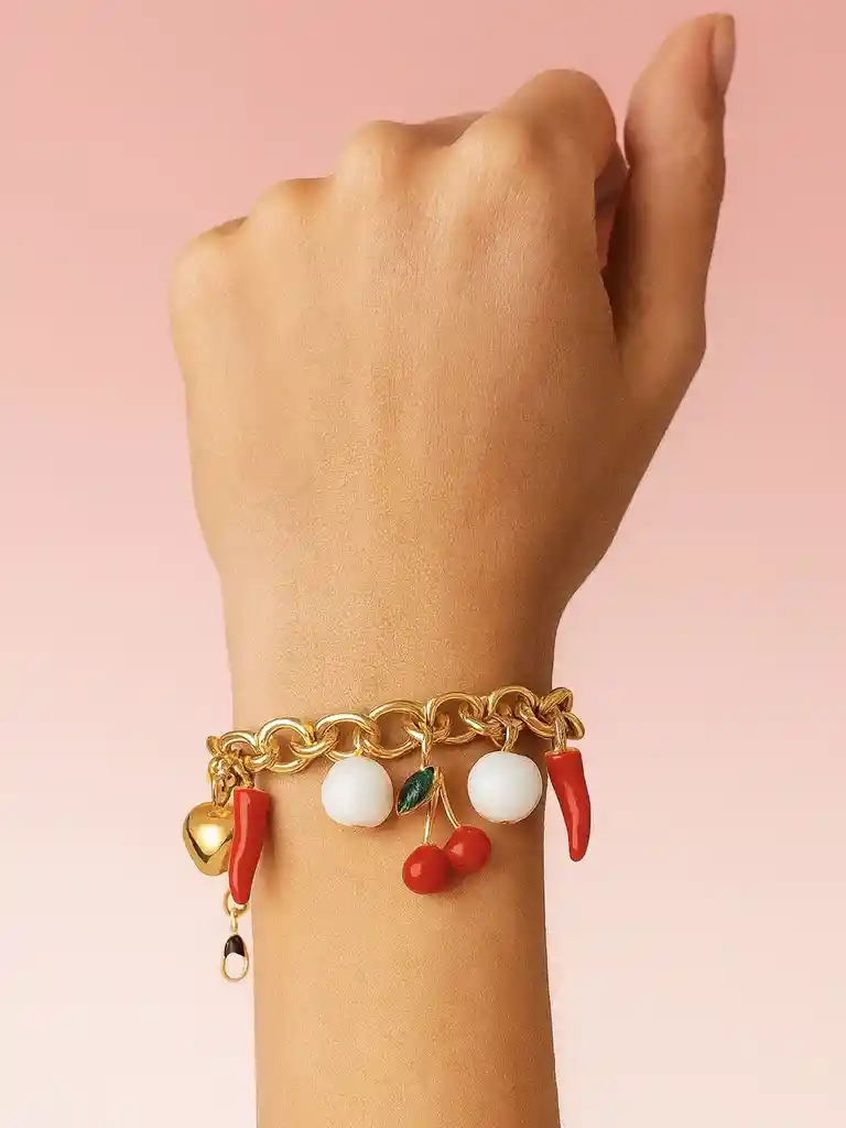 Brazalete en bronce con baño en oro de 18K y piedras naturales