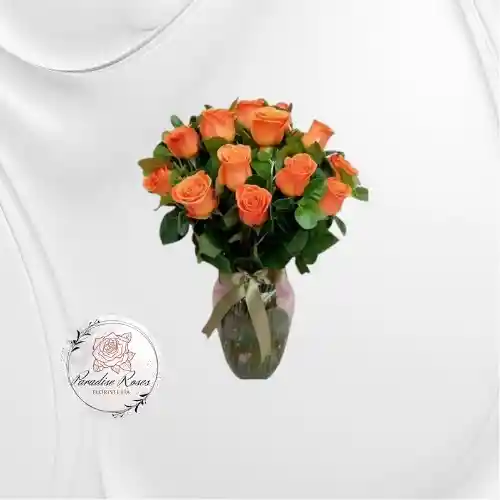 24 Rosas naranjas en jarrón de vidrio mas follaje. un estallido de alegría y energía que ilumina cualquier espacio. 🌿🧡 Ideal para agradecer, felicitar o dar ánimo. Perfecto para cumpleaños, logros personales, inauguraciones o simplemente para alegrar el día de alguien especial. tarjeta personalizada escríbelo en el chat.