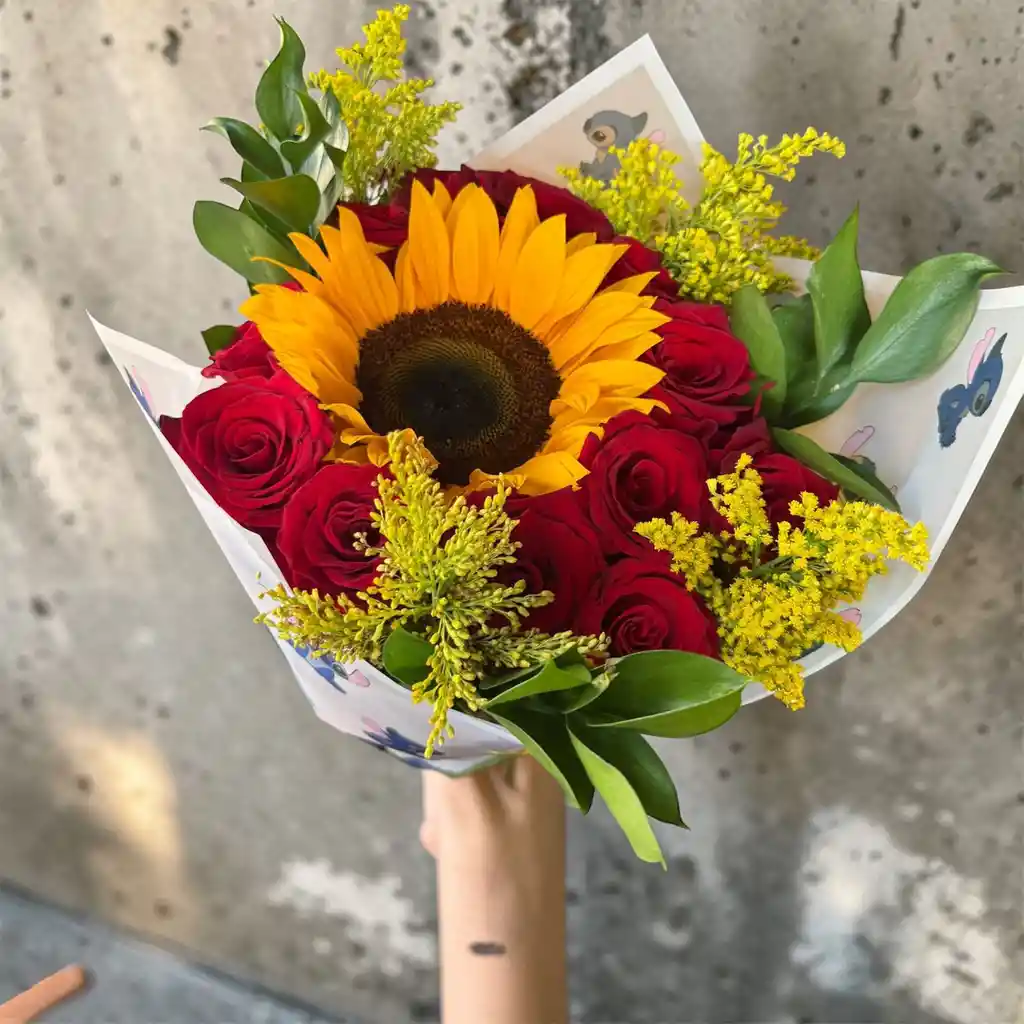 ✨🌹🌻Sorprende con un detalle que ilumina cualquier espacio y corazón. En Loren's Floristería, diseñamos este bouquet fusionando elementos tradicionales con toques modernos, logrando una pieza visualmente impactante y llena de energía positiva. Los elementos clave que definen este diseño son: Centro de Luz: Un imponente Girasol que actúa como el corazón del arreglo, simbolizando alegría y buenos deseos. Elegancia Clásica: Rodeado por una selección de Rosas Rojas premium que aportan profundidad y un contraste de color sofisticado. Textura y Frescura: Una combinación de follaje de Rusco verde intenso y sutiles toques de Áster amarillo, que aportan volumen y un aire silvestre muy natural. Acabado de Tendencia: Sellado con Papel Coreano de diseño exclusivo, que gracias a su estructura y pliegues, eleva la presentación a un nivel de boutique internacional. Es el regalo ideal para un agradecimiento, un cumpleaños o simplemente para recordarle a alguien que su presencia brilla como el sol.