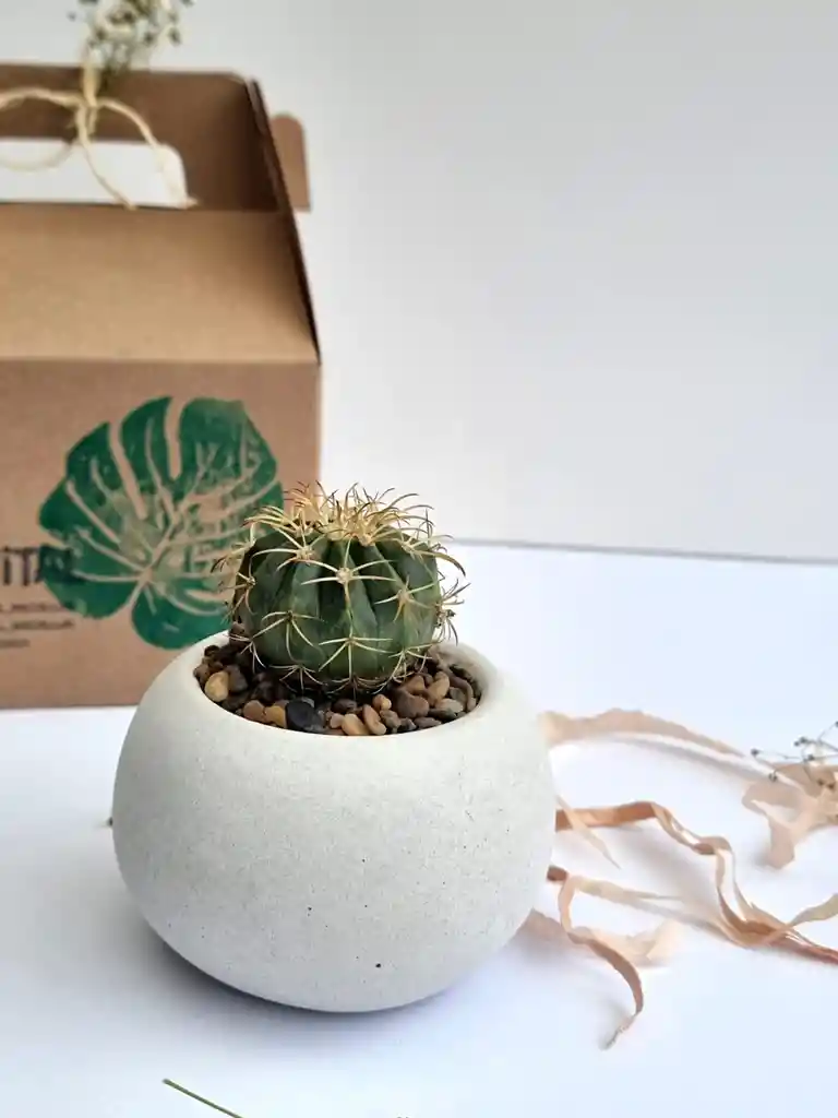 Burbuja de concreto en color natural + Cactus surtido Incluye caja lista para obsequiar