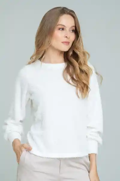 En Tejido Especial Escote Redondo Manga Larga Con Puño Silueta Amplia.