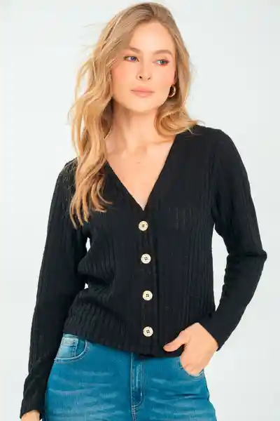 En Tejido Escote en v Con Botones de Ajuste de 32 L Manga Larga Espalda Lisa.