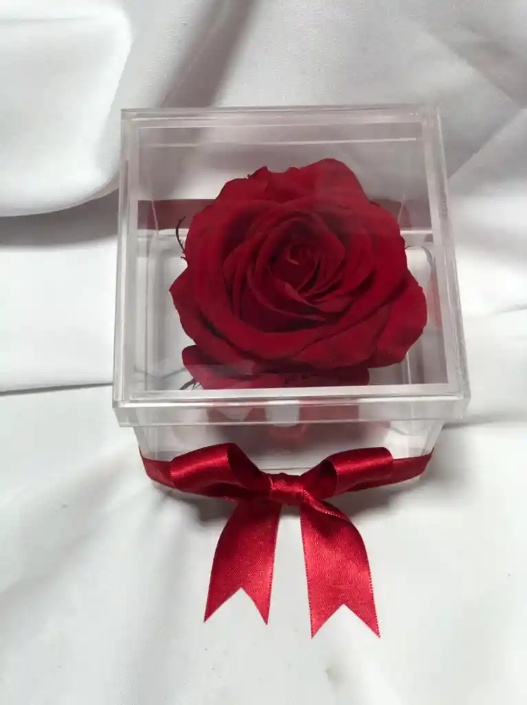 Rosa preservada Roja en caja decorada, dura de 1-3 años, tamaño premium.