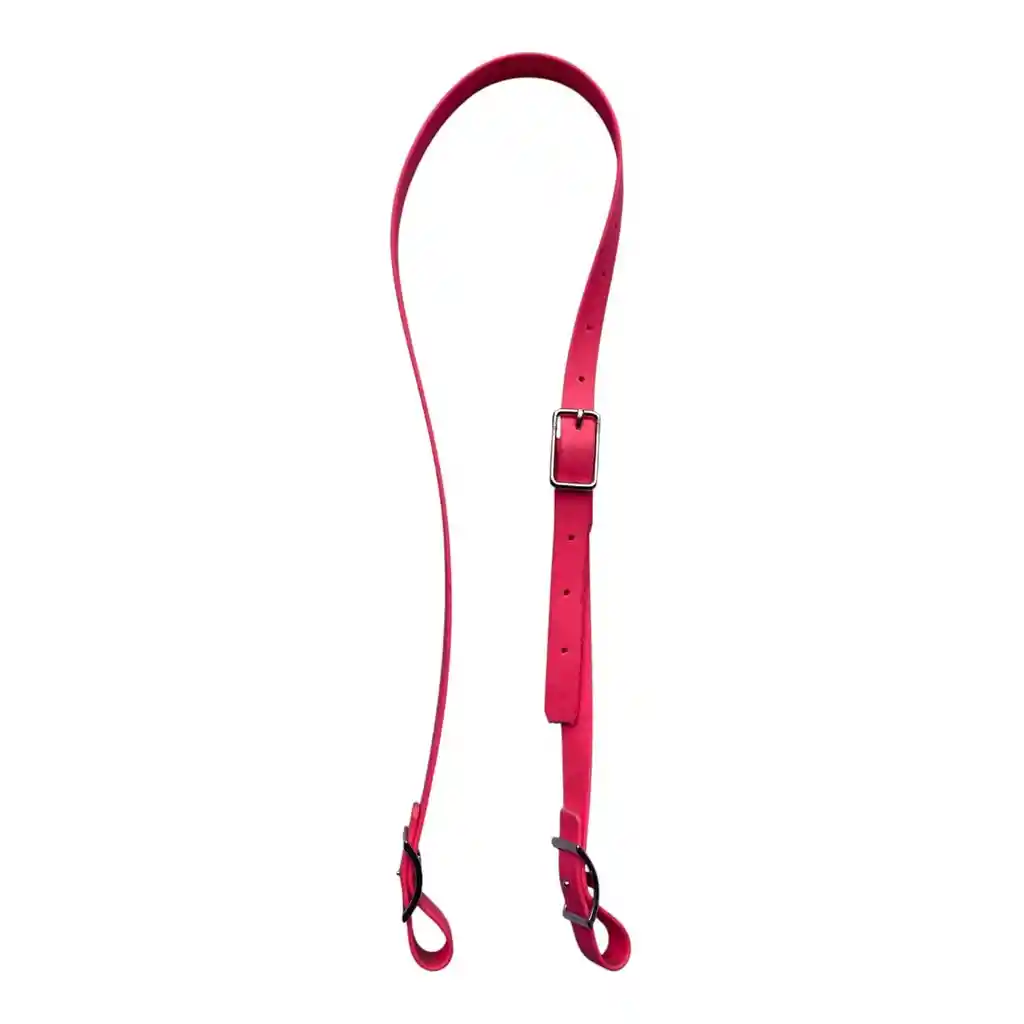Nuestras cargas de freno son un componente esencial de la cabezada de un caballo, diseñadas para conectar el bocado (freno) con las carrilleras de la cabezada. Su fabricación en Biothane las distingue por sus propiedades de durabilidad, facilidad de mantenimiento y resistencia a las inclemencias del tiempo, superando en muchos aspectos al cuero tradicional en ambientes exigentes. Resistencia al Agua y al Moho: No absorbe agua ni sudor, lo que lo hace ideal para climas húmedos o uso intensivo, ya que no se pudre ni desarrolla moho. Durabilidad Extrema: Altamente resistente a la abrasión, desgarros y roturas, garantizando una larga vida útil. Fácil Limpieza: Se limpia fácilmente con agua y jabón, sin necesidad de aceites o acondicionadores especiales como el cuero. Mantiene la Flexibilidad: No se endurece ni se agrieta con el frío o el calor extremo. Carga freno graduable Medidas de largo 97 cm la máxima Medida de largo 78 cm la mínima Medida de ancho 1,5 cm
