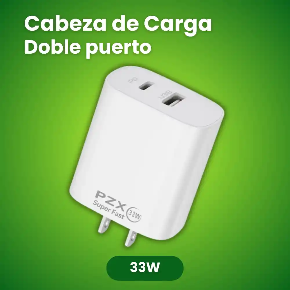El PZX P67 33W es un cargador de pared con tecnología Power Delivery (PD) y PPS 33W, diseñado para ofrecer carga súper rápida y estable en dispositivos compatibles. Cuenta con doble puerto (USB-C + USB-A), permitiendo cargar uno o dos dispositivos al mismo tiempo. Ideal para smartphones de gama media y alta que soporten carga rápida avanzada. 🔎 Características • Potencia máxima: 33W • Tecnología: PD (Power Delivery) • Soporte PPS 33W • Doble puerto: USB-C + USB-A • Carga simultánea • Diseño compacto • Enchufe tipo US 📦 Incluye • 1 Cargador PZX Modelo P67 (No incluye cable) ⚙️ Especificaciones Técnicas • Marca: PZX • Modelo: P67 • Potencia máxima: 33W • Tecnología: PD + PPS • Puertos: 1 USB-C 1 USB-A • Entrada: 110V–240V • Tipo de enchufe: US • Fabricación: China 🎯 Ideal para: • Samsung con Super Fast Charging • Dispositivos compatibles con PD • Usuarios que cargan dos equipos al tiempo • Clientes que buscan más potencia que 20W • Venta premium dentro de la categoría ⚠️ Importante La velocidad de carga depende del dispositivo y del cable utilizado. Para aprovechar 33W se requiere equipo compatible con PD/PPS. No es cargador original de marca específica. Garantía cubre defectos de fábrica, no daños por sobrecarga externa, humedad o manipulación indebida.