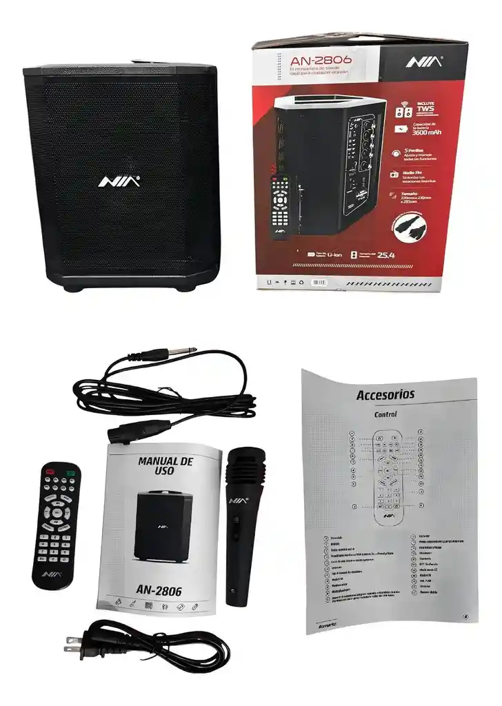 Parlante portátil de 6.5" , recargable con Bluetooth, tarjeta SD, USB. salida Auxiliar y Radio FM proporciona un sonido contundente y nítido CARACTERISTICAS: *Duración de hasta 8 horas seguidas de batería *Woofer de 6.5 " *Luces Led * Potencia 16W RMS * Entrada Auxiliar para cable 1x1 * Reproductor de MP3, MP4 * Bluetooth, USB, SD y Radio FM. * Entrada de micrófono con control de volumen y eco. * Batería de 3600mAh. *Reproduce formato MP3/WMA. * Control remoto y micrófono alámbrico. CONTENIDO DEL PAQUETE: Parlante cabina nía tipo bose 6.5 pulgadas Control Micrófono Manual Cable para cargar