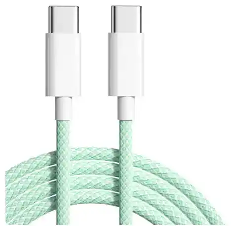 Cable USB-C en ambos extremos (También conocido como "TIPO C"), que será desde el Iphone 15, el cable de carga de los Iphone, uniéndose a la tendencia global de los Android. Cable de 1 metros de largo de alta calidad con estructura de cuerda (tipo cabulla) en un verde hermoso manzana, lo que lo hace más flexible e impide que se dañe con facilidad como los cables de goma normales que solemos usar. Es muy fuerte y resistente. Punta 1: Tipo C. Punta 2: Tipo C Es usualmente usado para la marca Apple y Android, Samsung, Xiaomi y todos los modelos de Iphone, en especial los nuevos, incluyendo también los Ipad. Protege la batería de un modo inteligente. Este cable tiene una carga de 60W, que es considerado "muy rápido" en el mundo de la transferencia de datos. También es usado para transferir datos. No incluye cabezal.
