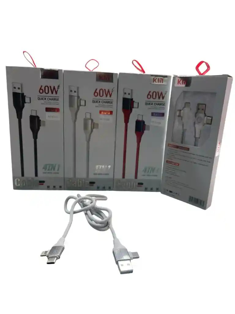 Potencia de 60W. Carga rápida y transferencia de datos de alta velocidad. Conectores USB-C a Tipo C y Lightning (iPhone). Diseño versátil y funcional.