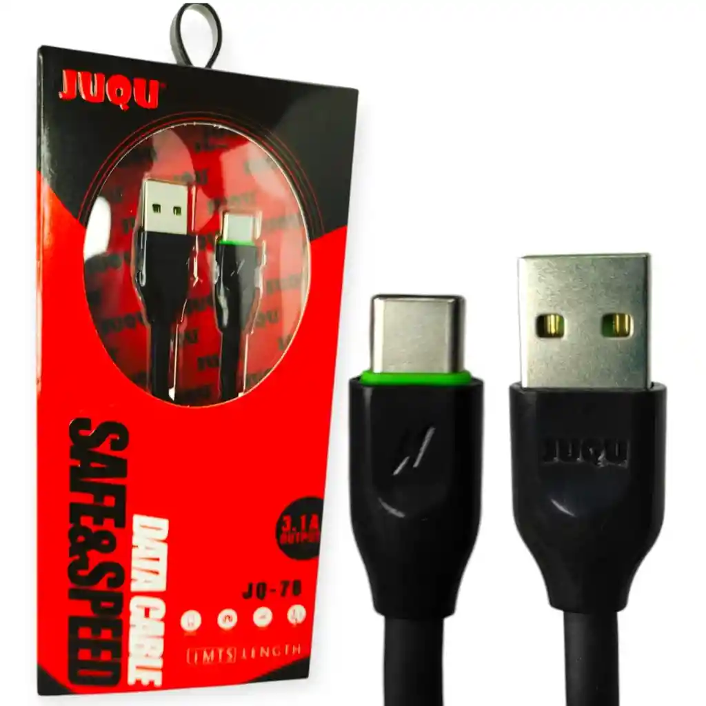 Cable de Carga Rápida Tipo USB a Tipo C Juqu 1 Metro 3.1A Ref: JQ-76 Cable de carga rápida y transferencia de datos, ideal para dispositivos con entrada Tipo C. Diseñado para ofrecer una carga eficiente y estable gracias a su capacidad de 3.1A. Su longitud de 1 metro brinda comodidad y practicidad para el uso diario en casa, oficina o vehículo. Características: Marca: Juqu Referencia: JQ-76 Tipo: USB a Tipo C Corriente: 3.1A (carga rápida) Longitud: 1 metro Función: Carga y transferencia de datos Uso: Smartphones, tablets y dispositivos compatibles con Tipo C Resistente, funcional y confiable para mantener tus dispositivos siempre cargados.