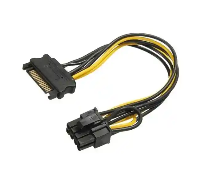 Cable adaptador de sata a un conector de alimentación PCI Express de 6+2 pines únicamente para tarjetas de video.Las nuevas tarjetas de vídeo PCI-Express requieren el uso de un nuevo conector de 6 u 8 pines para poder trabajar correctamente.Compatible con cualquier tarjeta de video NVIDIA ATI/AMD.Longitud: 15 Centimetros