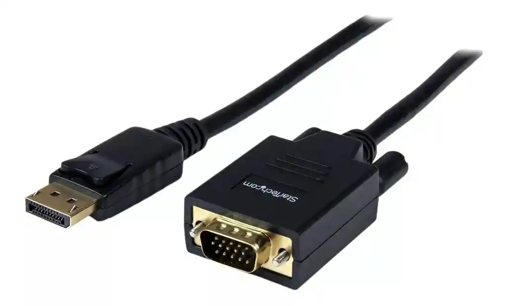 Somos Smarcenter Tecnopaper Este cable funciona únicamente para conectar computadoras, laptops o equipos todo en uno con conector DisplayPort hacia pantallas externas con conexión VGA. Si tiene alguna inquietud no dude en consultarnos. Este cable DisplayPort (DP) a matriz de gráficos Visual (VGA) 1080p de RS Pro está diseñado para facilitar las conexiones entre su ordenador y equipo analógico. Dispone de dos conectores que crean un enlace seguro entre los dispositivos y proporcionan imágenes claras. El conector VGA de este cable tiene tornillos de palometa para mantenerlo bien colocado y el conector DP está bloqueado, por lo que no hay interferencias en la señal. Ambos conectores están cubiertos por tapas antipolvo para evitar daños. Este componente incluye detección de conexión en caliente, lo que garantiza que no es necesario apagar los dispositivos antes de utilizar el cable. El cable de 1.5 m admite la transmisión de vídeo de alta definición a una resolución de 1920X1080. Por este motivo, es ideal para diseñadores gráficos que trabajan con imágenes detalladas, así como para usuarios de streaming o jugadores que utilizan monitores VGA como un escritorio ampliado. Características y ventajas • Tipo de cable DisplayPort a VGA El conector A de • es un tipo DisplayPort macho • El conector B es un tipo VGA macho • Longitud de 1.8 m. • Resolución máxima de 1080p • Material de revestimiento exterior de PVC • Cubierta de color negro • Versión: DisplayPort 1.1