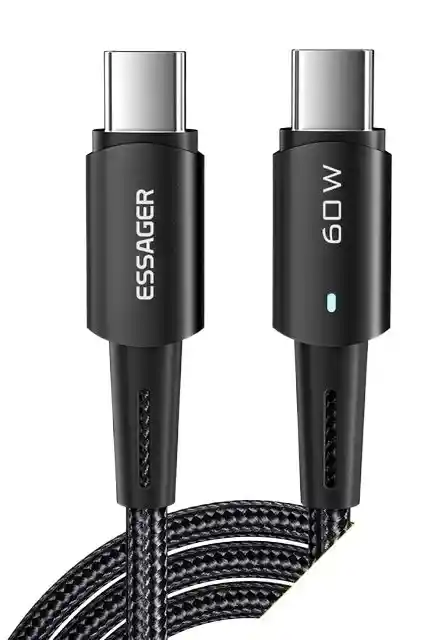 Cable Essager tipo C a C de 2 metros, diseñado para ofrecer una carga rápida y estable de hasta 60W. Su diseño trenzado garantiza alta resistencia al desgaste, evitando enredos y asegurando una larga vida útil. Ideal para cargar dispositivos y transferir datos con velocidad y seguridad. Especificaciones: Tipo de conector: USB-C a USB-C Longitud: 2 metros Potencia máxima: 60W (20V/3A) Material: Nylon trenzado de alta resistencia Transferencia de datos: hasta 480 Mbps Compatibilidad: dispositivos con puerto USB-C Función: carga rápida y transferencia de datos